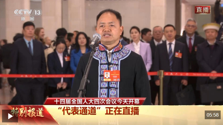 今天(3月5日),十四屆全國人大四次會議首場“代表通道”在人民大會堂舉行,全國人大代表、雲南省文山州廣南縣落松地小學教師農加貴接受記者採訪。