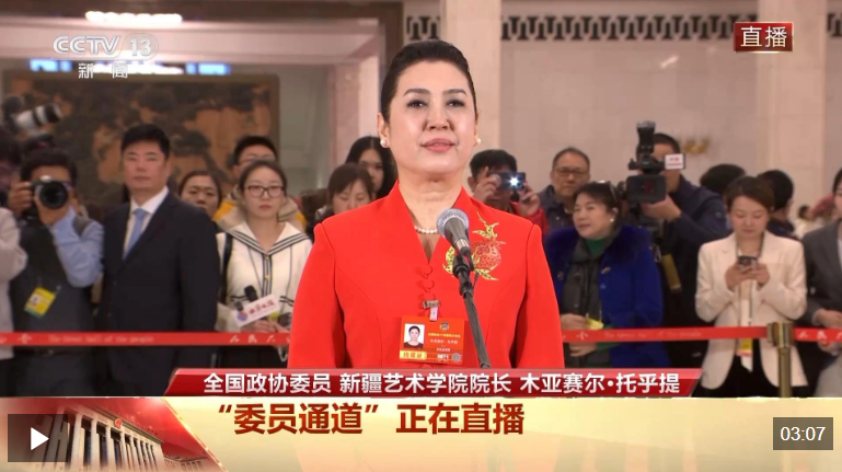 今天(3月4日)下午,全國政協十四屆四次會議首場“委員通道”在人民大會堂舉行,全國政協委員、新疆藝術學院院長木亞賽爾·托乎提接受了記者採訪。