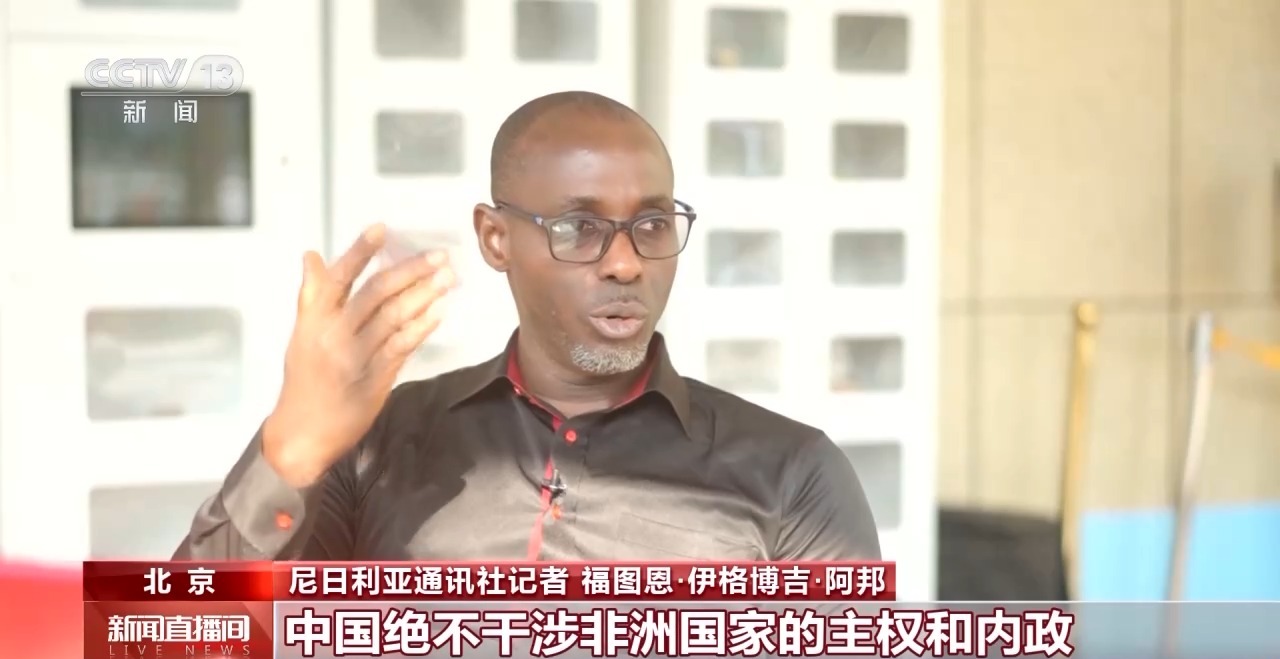 尼日利亞通訊社記者 福圖恩·伊格博吉·阿邦:我覺得非常榮幸能在這里提問。我感受到,中方高度重視非洲。中國絕不幹涉非洲國家的主權和內政,但會盡己所能,幫助非洲不斷發展進步。這非常值得讚賞,令人振奮。