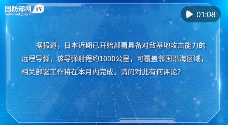記者:據報道,日本近期已開始部署具備對敵基地攻擊能力的遠程導彈,該導彈射程約1000公里,可覆蓋鄰國沿海區域,相關部署工作將在本月內完成。請問對此有何評論?