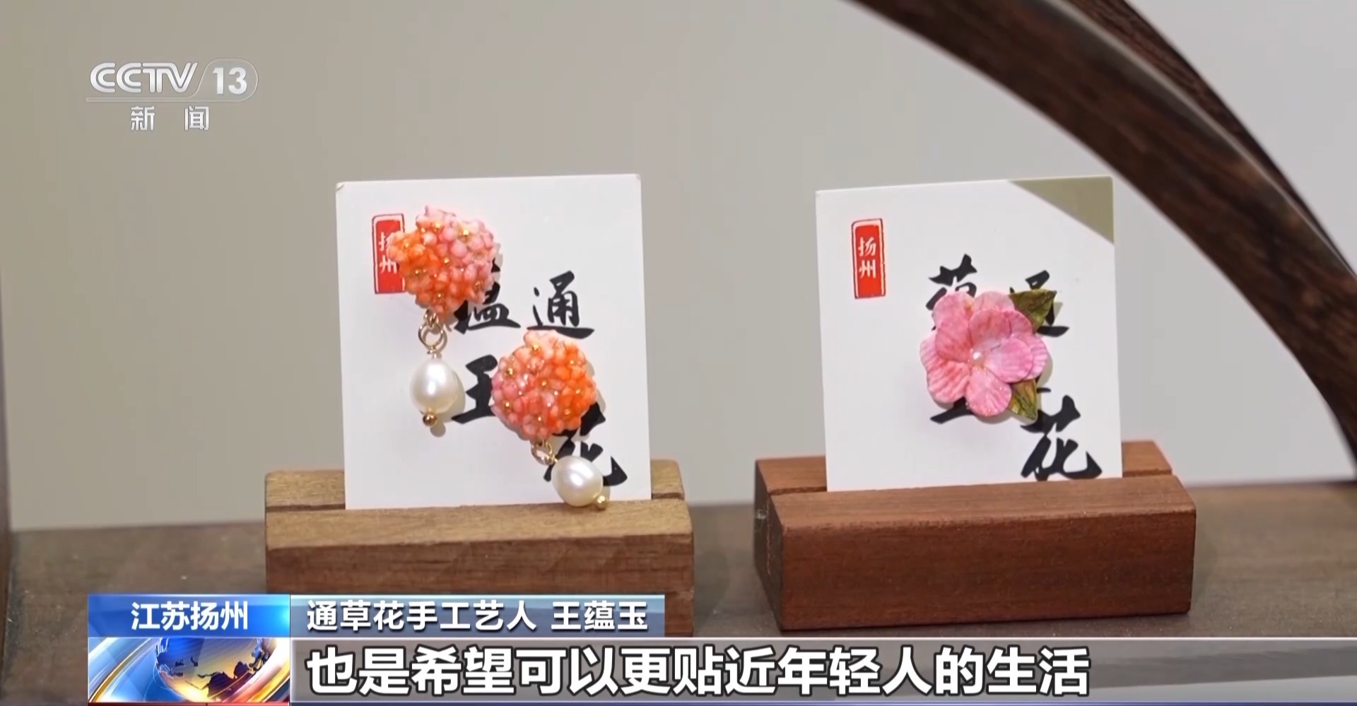 通草花手工藝人 王蘊玉:我們根據最近的季節推出了一些像冰箱貼、胸針、發簪,還有我們的耳飾等一些作品,希望可以更貼近年輕人的生活,讓年輕人喜歡。