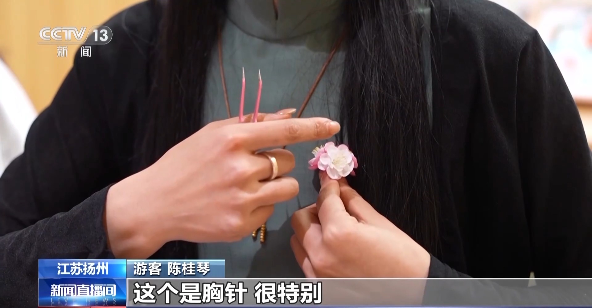 遊客 陳桂琴:通過手工藝把它做成薄如蟬翼的這種感覺,特別逼真,這個是胸針,很特別。