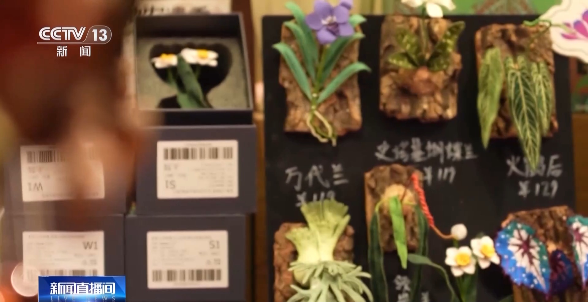 某文創店老板 郭晨:這些帶花卉的產品,都是我們這邊比較暢銷的產品,銷售額比去年漲了大概30%。