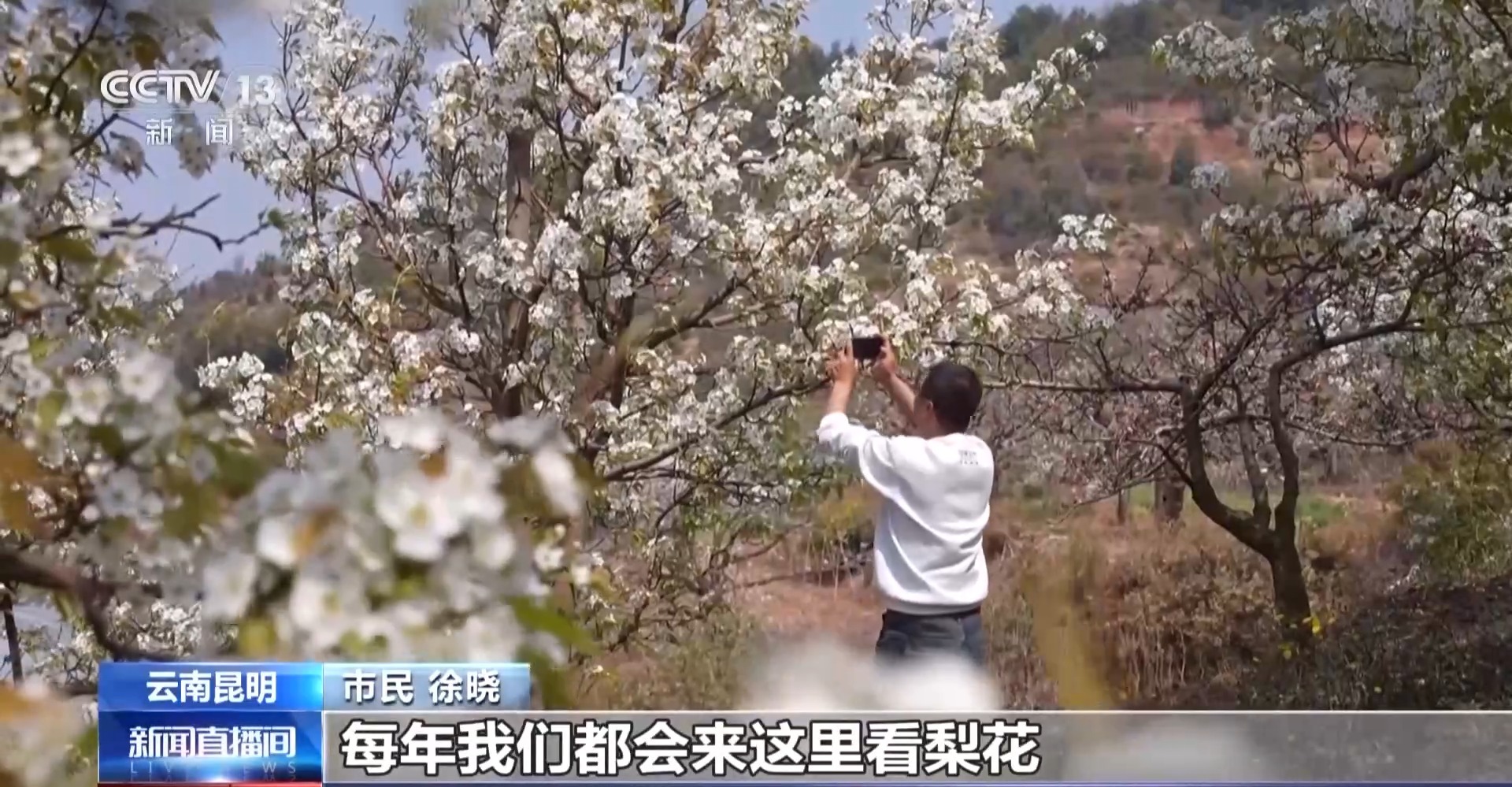 市民 徐曉:每年我們都會來這里看梨花,梨花飄下來就是很有詩意的那種感覺。