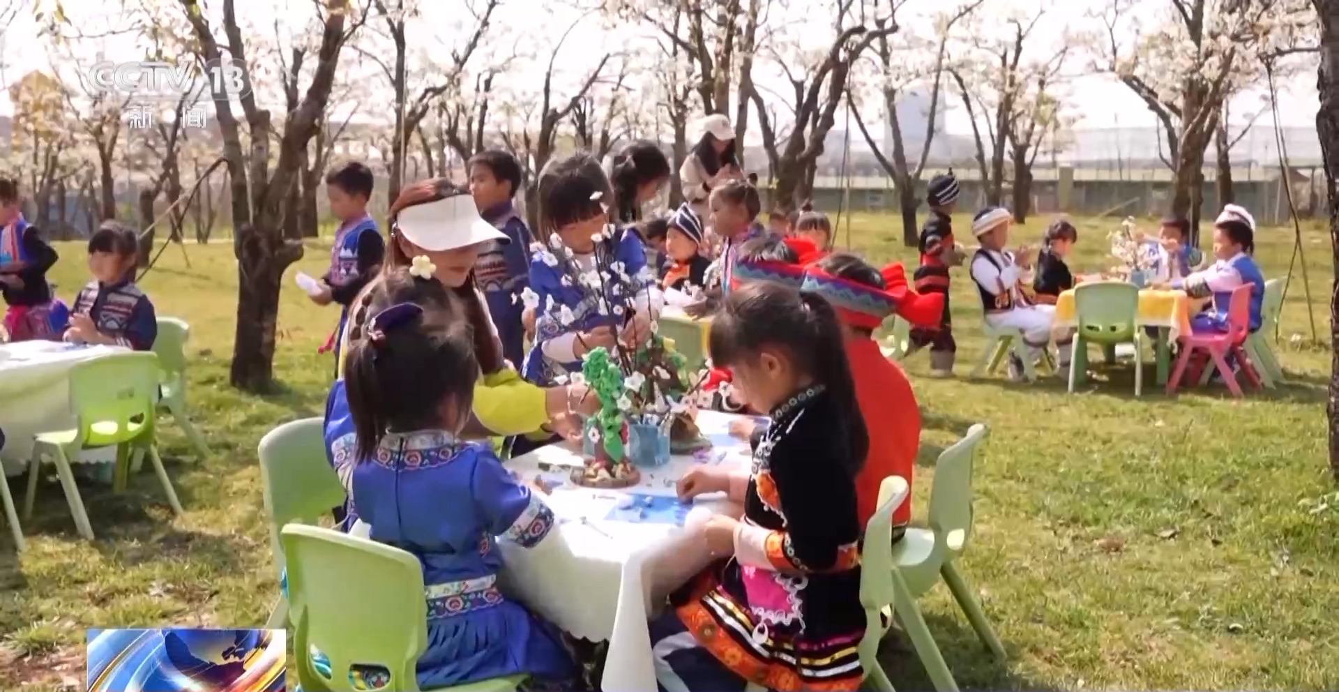 今年,當地圍繞盛開的梨花,推出了特色研學遊。孩子們用彩泥制作的梨樹,也花開滿枝。