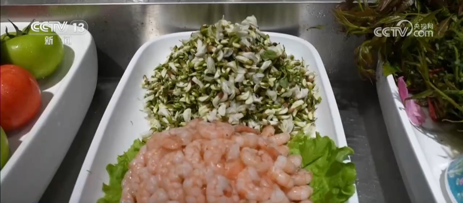 涼拌槐花清爽解膩,槐花湯色澤清亮,入口鮮爽溫潤,還有槐花餃子、槐花蒸菜等都讓食客們讚不絕口。