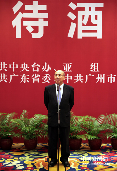 11月11日,中共中央臺辦與廣州亞運會組委會、廣東省委、廣州市委共同舉辦招待酒會,歡迎前來出席廣州亞運會開幕式的臺灣各界嘉賓。圖為中共中央臺辦王毅主任在招待酒會上致辭。(中國臺灣網 鐘寶華 攝)