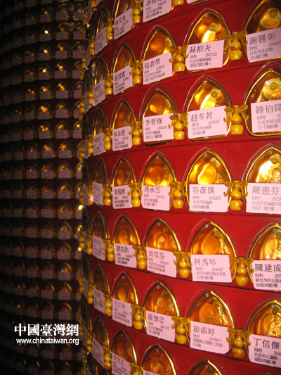 光明燈座上,有姓名、生日、地址等數據,請神明多保佑。
