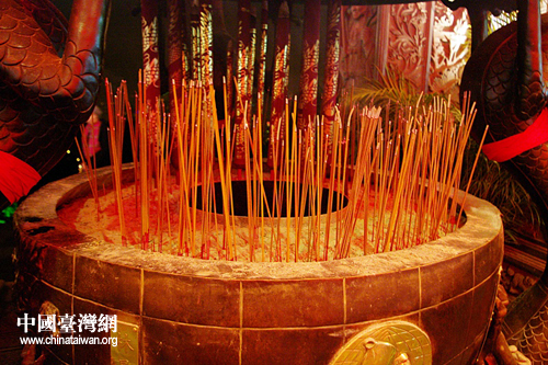 入正殿祭拜要脫掉鞋子,由此可知香火有多旺了。