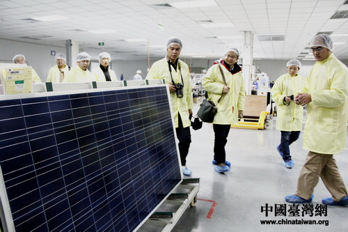 10月26日,“感知甘肅全國網絡媒體記者團”走進太陽能光伏發電設備生產基地。圖為記者參觀酒泉正泰太陽能科技有限公司的100MW非\微晶薄膜太陽能電池生產線。 (中國臺灣網記者 董憲超 攝)