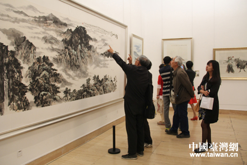 “彩筆繪中華”海峽兩岸中國畫名家交流展展廳吸引了眾多觀眾。(中國臺灣網 齊曉靖 攝)