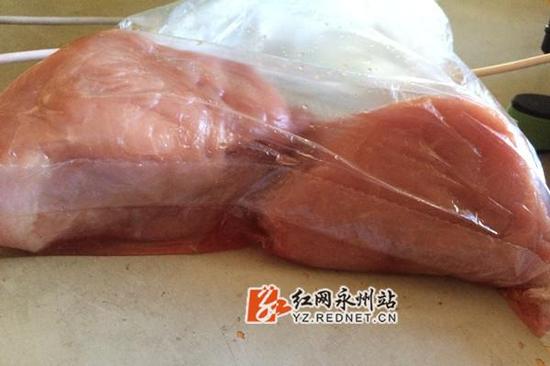 紅網永州站8月15日訊 8月14日,記者接到湖南永州市民夏蕾(化名)投訴,自己從冷水灘區鳳凰園宏平市場(珊瑚菜市場)買到的豬肉滲水嚴重,懷疑買到了注水豬肉。