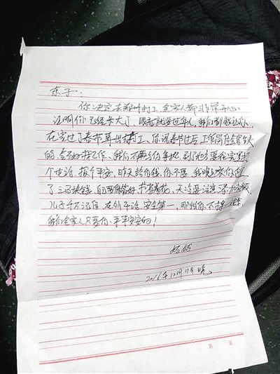 “……給你錢你不要,晚上放你衣服包里了……媽媽不希望你掙多少錢,只希望你平平安安。”12月12日,在一個稍舊的包袱里,一張薄薄的信,溫暖了一群在外工作的人,雖然他們不是信的主人,但一位母親的愛讓他們熱淚盈眶,更想念老家的親人。鄭報融媒記者 張華 通訊員 雲溪 文/圖