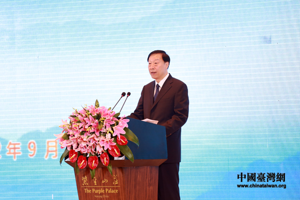 海峽兩岸企業家紫金山峰會19日上午9時在南京紫金山莊會議中心紫金廳舉行開幕式。中共江蘇省委書記羅志軍出席開幕式並致辭。(中國臺灣網 王偉 攝)