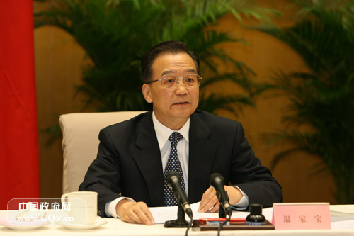2007年4月27日下午3時,“全國節能減排電視電話會議”在國務院小禮堂召開。國務院總理溫家寶出席會議並講話。國務院副總理曾培炎主持會議。圖為溫家寶出席全國節能減排工作電視電話會議並講話。新華社記者 饒愛民 攝