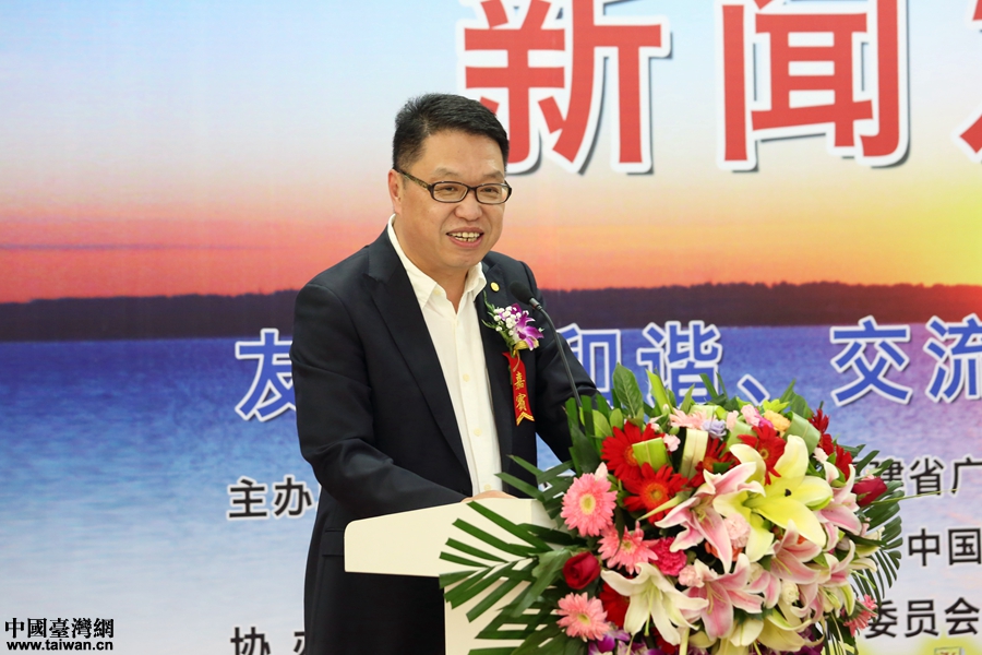九州文化傳播中心主任王明鑒在發布會上宣布大賽開幕。(中國臺灣網 尹賽楠 攝)