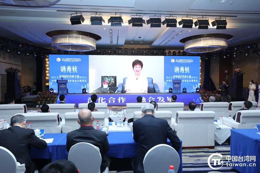 中國國民黨前主席、中華青雁和平教育基金會董事長洪秀柱通過視頻連線方式致辭。(中國臺灣網 尹賽楠 攝)