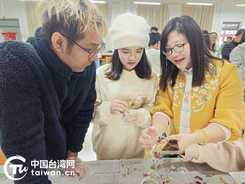 活動現場張玉明老師同留學生一起制作花簽(中國臺灣網 發)