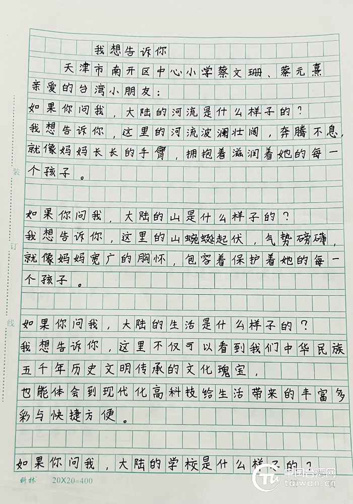 ¤p»OM½²¤å¬À¡B½²¤¸¿Qªº¤â¼g«H¡m§Ú·Q§i¶D§A¡n¡C¡]¤¤°ê»OÆWºôµo¡^
