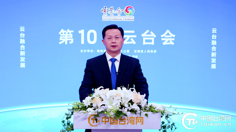 中共中央臺灣工作辦公室、國務院臺灣事務辦公室副主任潘賢掌在第10屆雲臺會主題日活動上視頻致辭(中國臺灣網 葉春祿攝)