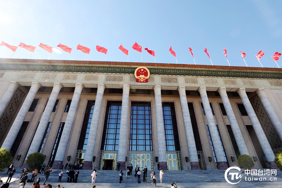 人民大會堂外紅旗飄揚。(中國臺灣網資料圖)
