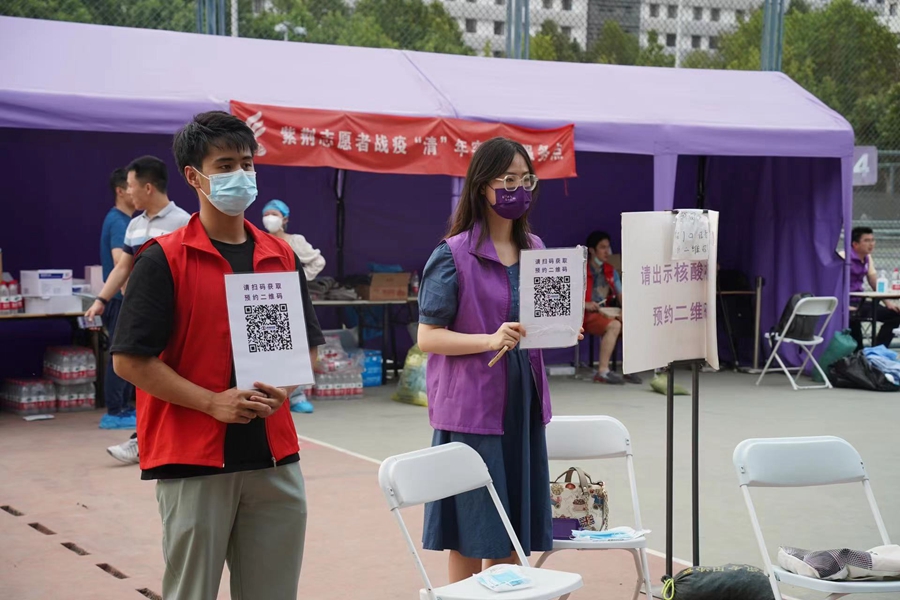 林桐宇作為志願者參加清華大學紫荊志願者戰疫“清”年突擊隊,左一為林桐宇。 (林桐宇供圖,中國臺灣網 發)