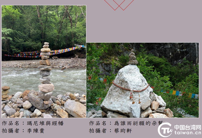 臺灣學生攝影作品《瑪尼堆與經幡》和《為誰而祈福的朵幫》。(中國臺灣網 發)