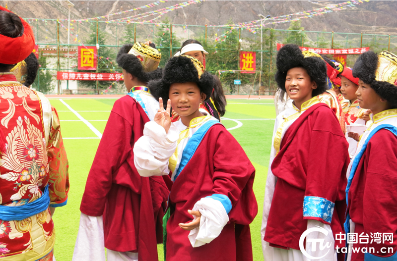 臺灣學生鏡頭下剛跳完鍋莊舞的藏族小學生。(中國臺灣網 發)