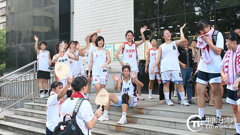 慈利一中女子籃球隊的隊員們揮手送別臺灣的隊員們。(中國臺灣網 徐紹軒 攝)