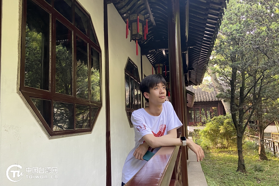 陳韋廷于蘇州園林。(中國臺灣網 發)
