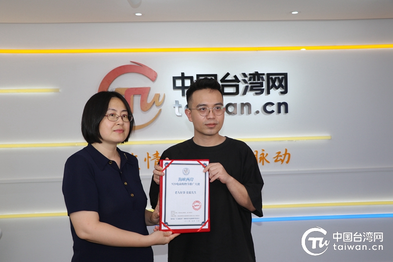 中國臺灣網為積極參與本次電商節的主播達人“老九好茶”頒發“海峽兩岸920電商購物節推廣大使”榮譽證書。(中國臺灣網 發)