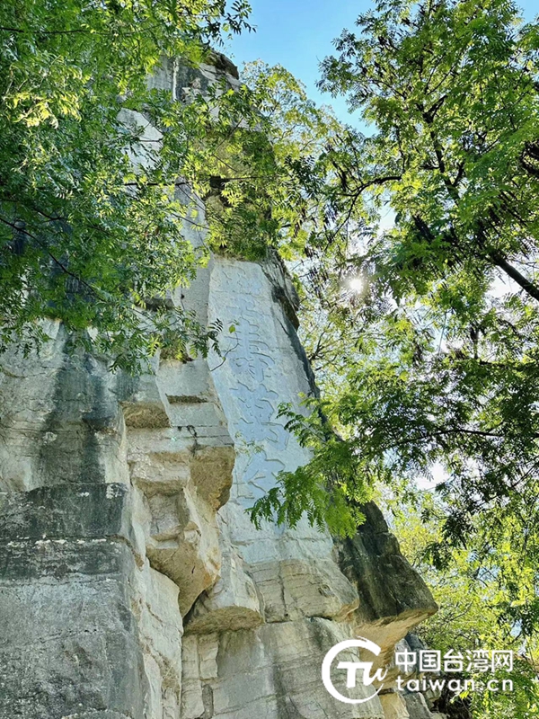 摩崖石刻中的“聖壽萬年”。(中國臺灣網 李柏濤 攝)