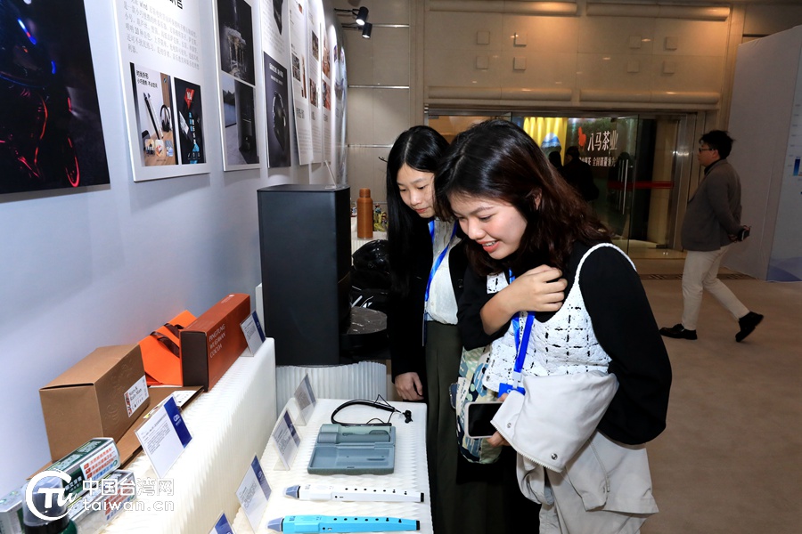 參與活動的臺灣青年參觀中華設計獎歷屆優秀作品展。(中國臺灣網 尹賽楠 攝)