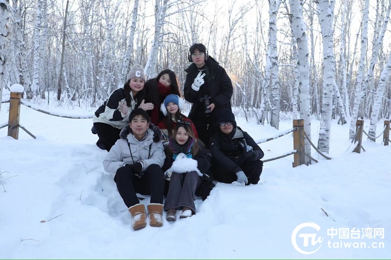 臺灣同學們爬雪山觀雪原,在白樺林合影留念。(中國臺灣網 發)
