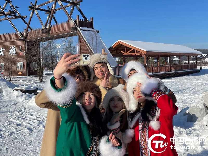 臺灣同學們在敖魯古雅身著鄂溫克民族服飾拍照留念。(中國臺灣網 吳曉龍 攝)