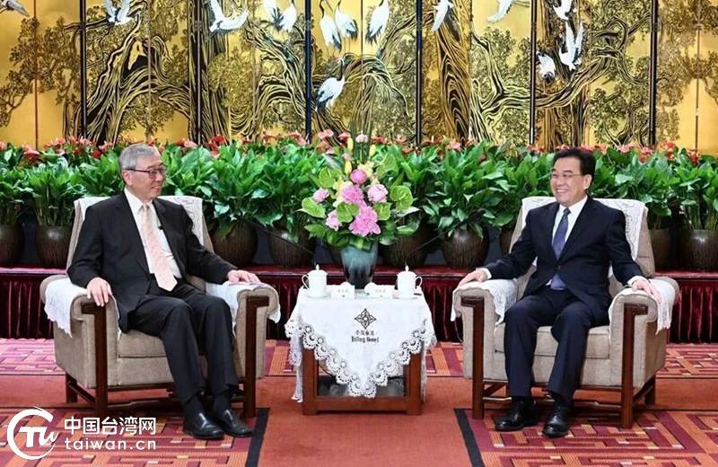 4月19日,江蘇省委書記信長星在南京會見理事長苗豐強率領的臺灣工業總會大陸經貿參訪團。(中國臺灣網發)