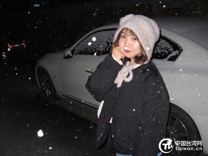 2023年,在北京大學攻讀新聞與傳播學院碩士研究生的臺生黃幼欣第一次見到落雪,圖為黃幼欣在雪夜留念。(中國臺灣網 發)