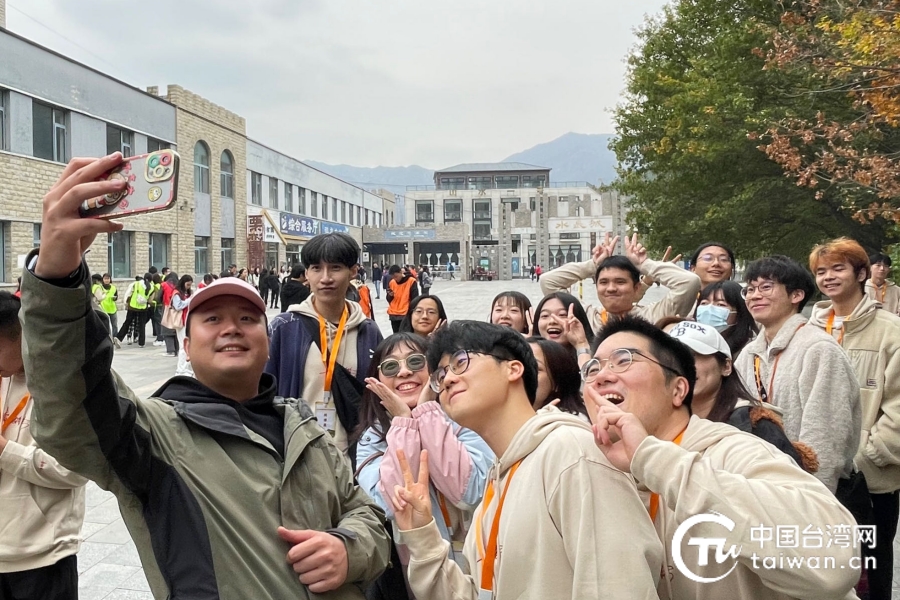 2023年11月4日至5日,全國臺聯組織50名2023級在京臺生于北京市懷柔區九渡河黃花城水長城景區秋遊。圖為臺生們在活動現場自拍。(中國臺灣網記者 常凱特 攝)