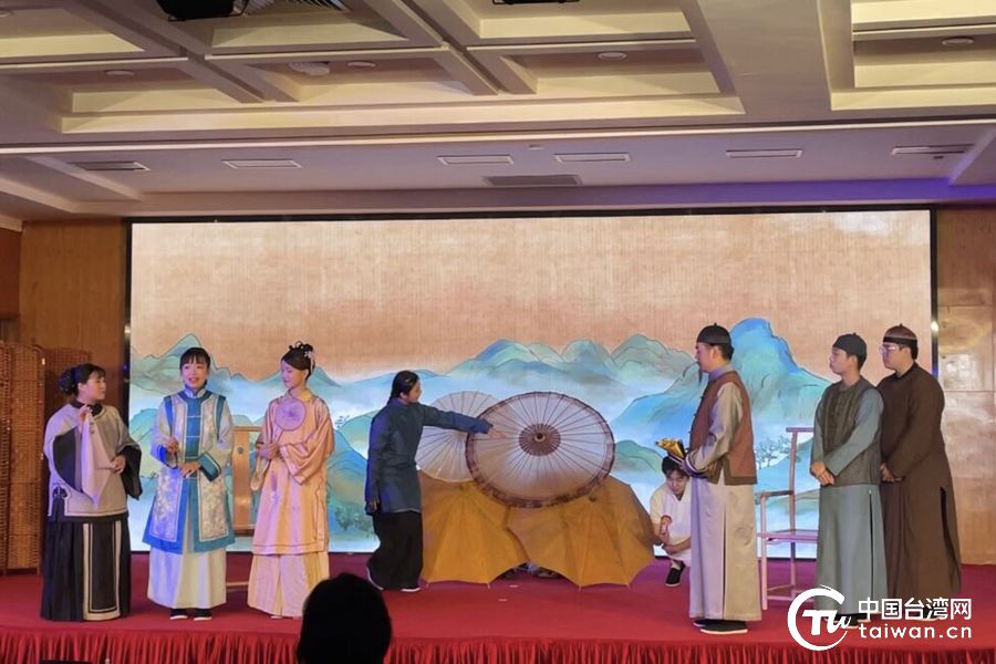 2023年7月27日,由星雲文化教育公益基金會、北京師范大學教育基金會聯合主辦的“星連心兩岸研學·中華文明探索之旅”結業典禮在浙江橫店舉行。圖為兩岸學子共同演繹話劇《六尺巷》。(中國臺灣網 常凱特 攝)