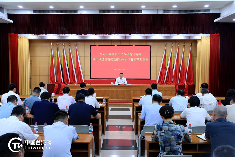 宋濤表示,開展深入貫徹中央八項規定精神學習教育,是習近平總書記親自點題、親自部署的一項重要工作,也是今年黨建工作的一項重點任務。當前,臺海形勢復雜嚴峻。中央臺辦深入貫徹中央八項規定精神學習教育和巡視整改兩項重要的政治任務同步推進,時間緊、任務重、要求嚴,全辦黨員幹部要堅持不懈用習近平新時代中國特色社會主義思想凝心鑄魂,學深悟透習近平總書記關于對臺工作的重要論述、新時代黨解決臺灣問題的總體方略,把開展學習教育同貫徹黨中央對對臺工作的決策部署和完成各項工作結合起來,堅持以上率下,壓實政治責任,堅持從嚴從實,抓好學習教育,加強理論武裝,整改突出問題,強化警示教育,注重糾樹並舉,健全制度機制,推進作風建設常態化長效化,以作風建設新成效推動對臺工作高質量發展,為全面推進中華民族偉大復興、實現祖國統一大業貢獻力量。