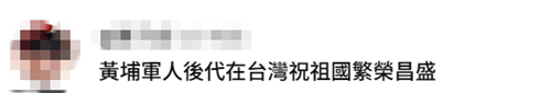 還有人表示,“黃埔軍人後代在臺灣祝祖國繁榮昌盛”。