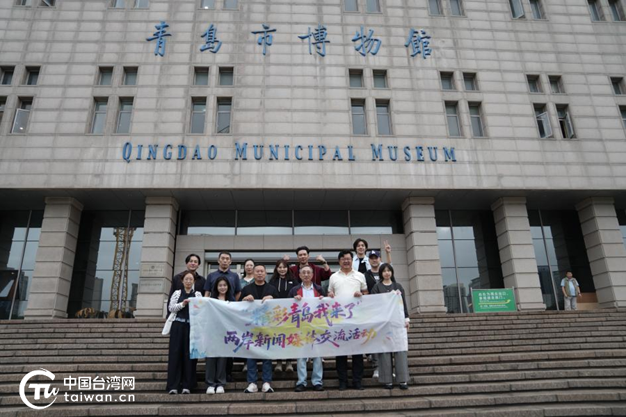 青島市博物館前合影。(中國臺灣網記者 劉賽飛 攝)
