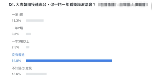 有臺灣媒體進行網絡投票調查臺灣民眾看演唱會的頻率,參與投票的3.18萬人之中,有64.8%表示沒看過。還有粉絲被媒體詢問是否因為“有錢又有閒”來看演唱會時表示,“也不是欸”,純粹是為了娛樂。