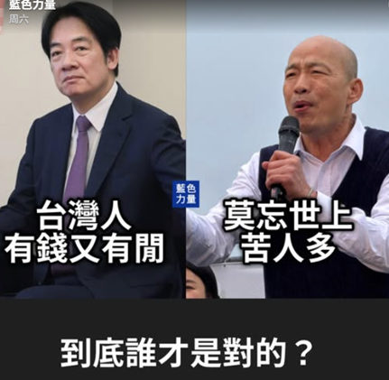 有粉絲專頁發文直言,賴清德的說法看似輕松,卻完全無視房價、工時、薪資停滯等沉重現實,脫離現實到可怕的地步。比起賴清德,韓國瑜的金句“莫忘世上苦人多”到現在都還貼近老百姓。此話一出,有一千多名網友涌入點讚。