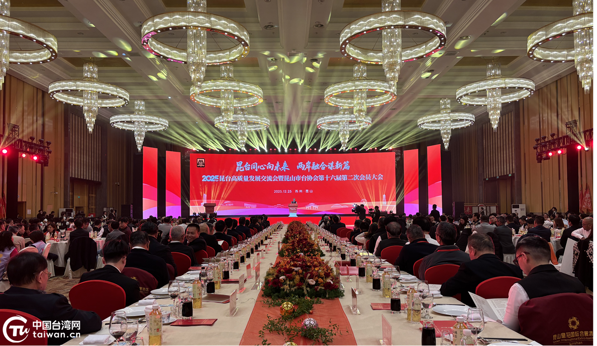 中國臺灣網昆山12月26日訊(記者 劉琳)12月25日晚,2025昆臺高質量發展交流會暨昆山市臺協會第十六屆第二次會員大會在江蘇昆山舉行,包括昆山市臺協會全體會員在內的約1300人出席。大會以“昆臺同心向未來 兩岸融合謀新篇”為主題,旨在進一步提升在昆臺商臺胞的凝聚力和向心力,鼓勵支持臺商臺胞在昆扎根發展、創新發展、高質量發展。