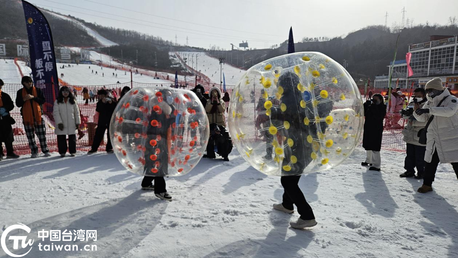 臺灣青年在雪地玩遊戲。(中國臺灣網記者 李寧 攝)