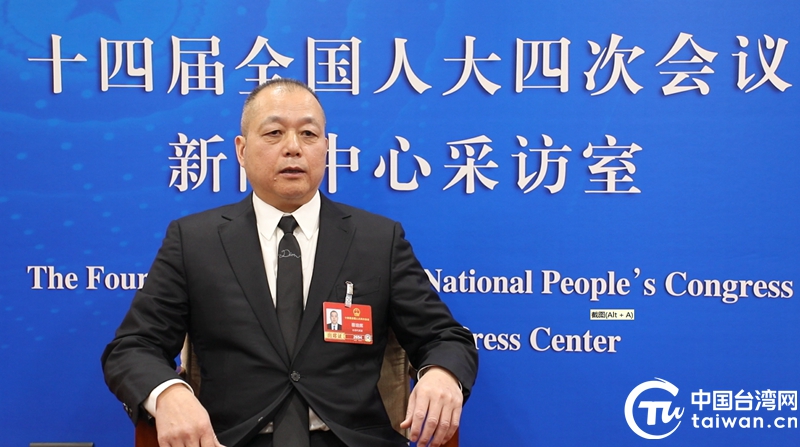 3月4日,全國人大代表蔡培輝在代表團駐地接受媒體聯訪。(視頻截圖)