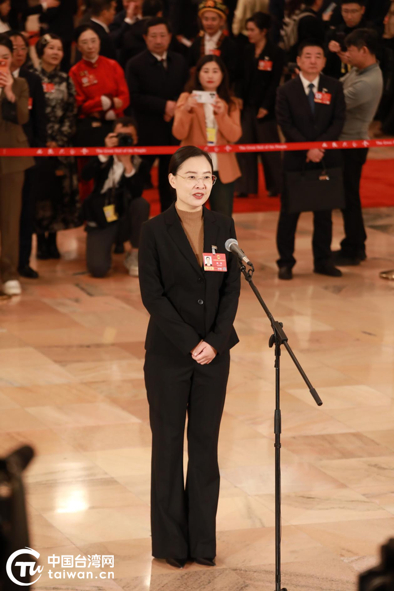 3月9日,十四屆全國人大四次會議舉行第二場“代表通道”集中採訪活動。這是全國人大代表顧雪接受媒體採訪。(中國臺灣網記者 李寧 攝)