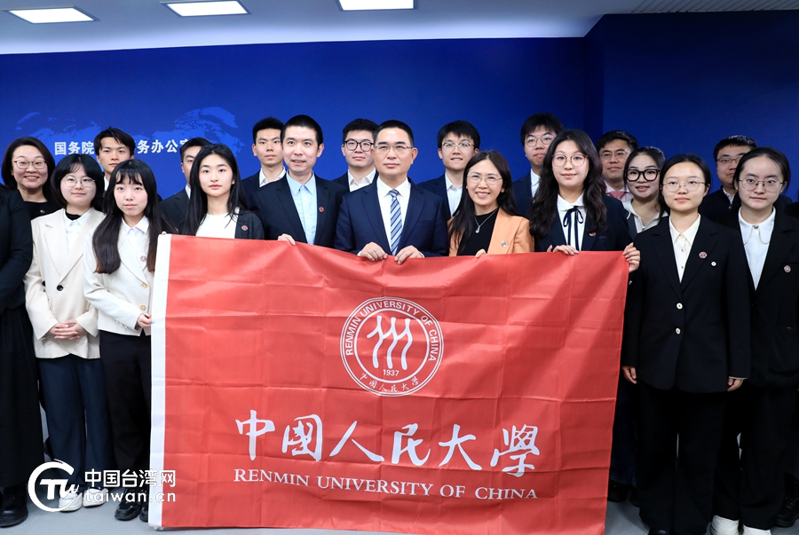 發布會後,陳斌華與前來觀摩學習的中國人民大學兩岸師生代表合影。(中國臺灣網記者 尹賽楠 攝)