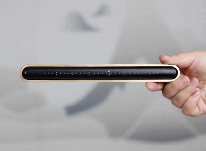 該作品經過作者的獨特構思,充分運用產品設計和美學設計,將材質與產品、美學與產品巧妙結合,賦予該作品更多的現代簡約、功能,該作品由黑檀木和銅兩種材質組成,整體造型為上下開合的鎮尺造型。